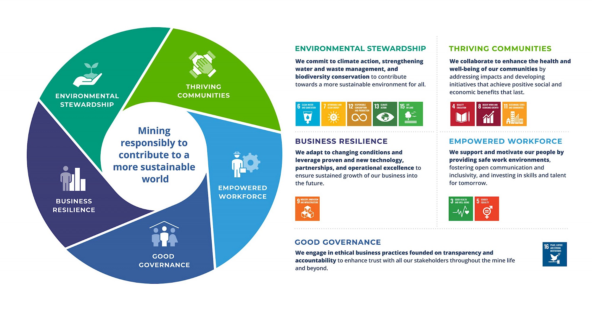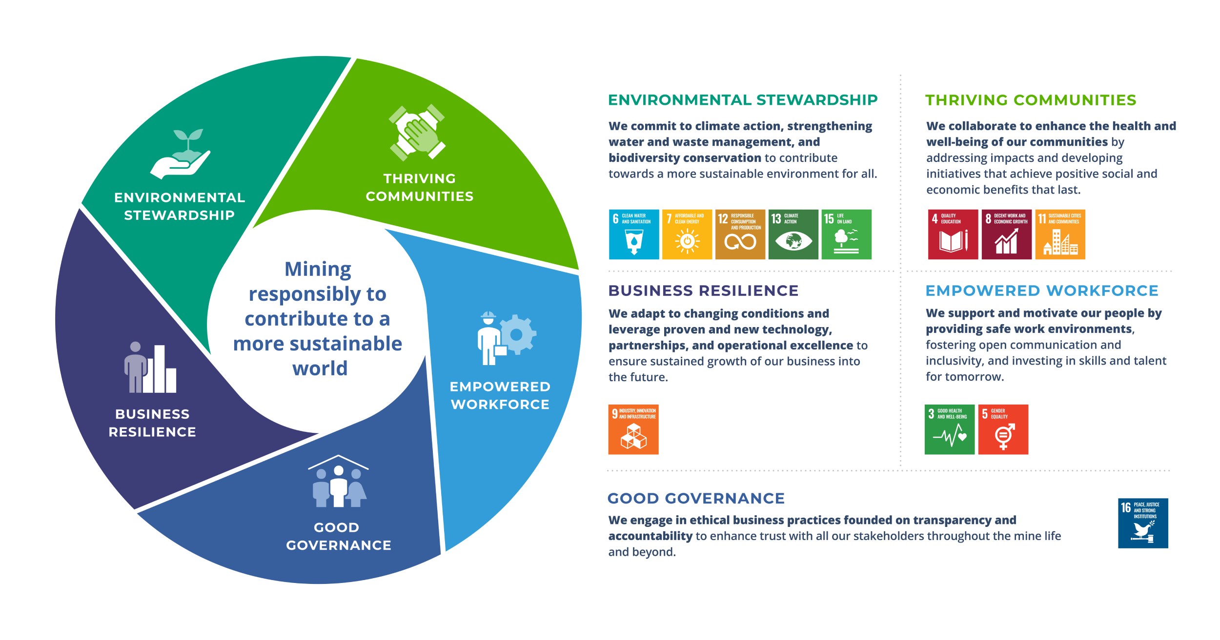 Guiding the strategy is our purpose statement: Mining responsibly to contribute to a more sustainable world.
